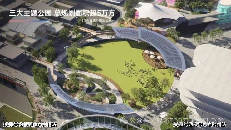 项目自带 5 万方城市公园,与社区景观串联,打造更高浓度的花园场景,让邻里关系变得亲密无间, 将花园城市理念与 TOD 相结合, 强调在以轨道交通站点为核心的综合开发区域中,融入大量绿色生态元素,打造出兼具交通便利性、功能复合性与生态宜居性的城市空间