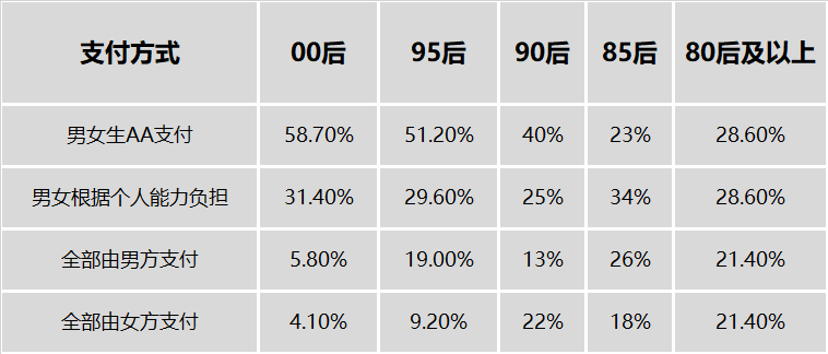 看来95后女生们的财务平等、独立消费这样的观念,越来越明显