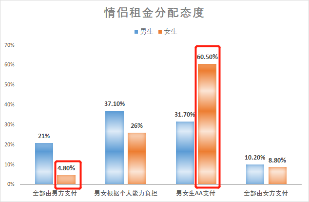 更让人没想到的是,就算是和异性合租时,也更加倾向选择AA支付租金