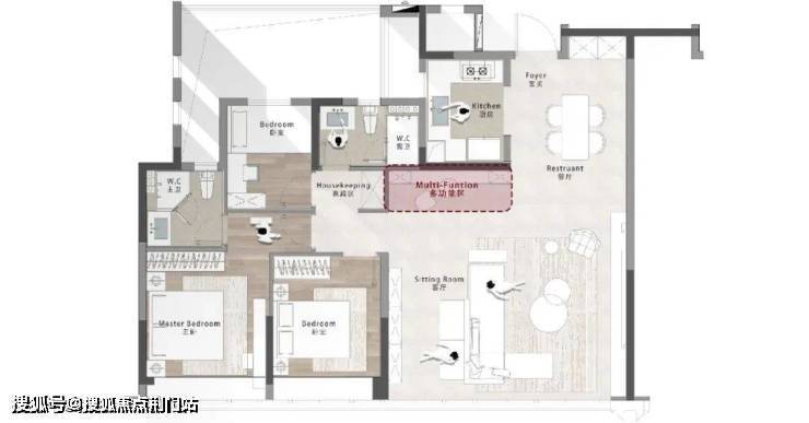 应对市场相同面积段下的产品,我们利用对封闭阳台等的计容规则变化,挖掘和提升户型产品的功能潜力,在满足置业者刚性需求的前提之下,试图提供空间多样性组合的可能,也因此赋予户型多样的居住性格。