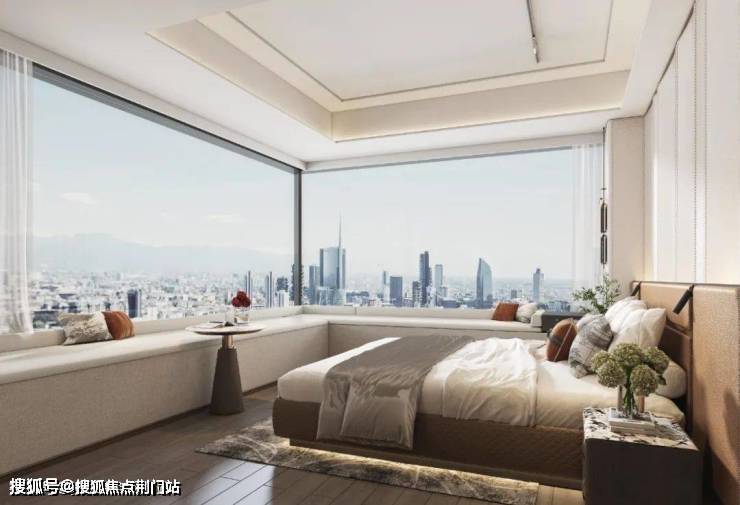 公共建筑的设计手法,通过大面积幕墙窗体系替代传统住宅的立面。蓝灰色玻璃幕横向辅以金色线条,勾勒出现代艺术感的流线立面。这种设计不仅让建筑外观更具现代质感,更重要的是将每户采光面较传统住宅提升了约30%,在确保私密性的同时,实现了‘引光入室’的居住体验。这种处理方式既符合规划对区域城市风貌的管理要求,也让住宅突破了传统采光局限,实现了美学价值与功能升级的双重突破。