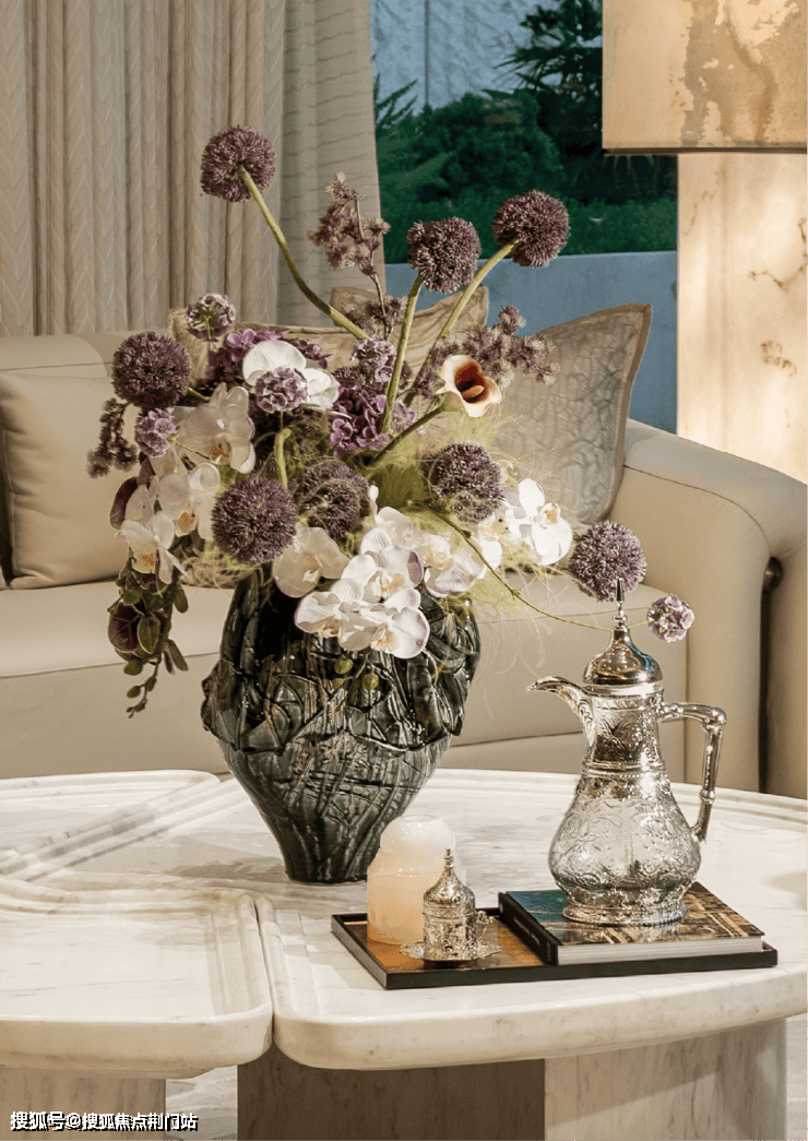 以自然叶脉为蓝本的定制屏风酒柜,用当代设计语言转译自然密码。每个细节都在诉说对女性需求的深刻洞察——既要气场全开的从容,也要慵懒午后的松弛。