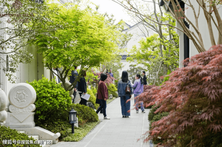 门窗、影壁、屋顶等经典中式型材与凯撒灰石材等创新中式型材巧妙融合,使得建筑整体仿若高冠博带的雅仕,踏风而来、明朗雅逸。枫、松、红梅、鸿运果等颇具中式特色的盆景,虚实相映,沿途比比皆是,生活鉴赏家们感受着古今人居美学的相融相生,触摸着由真材实料勾勒而成的建筑中,所蕴含着的匠心之美。