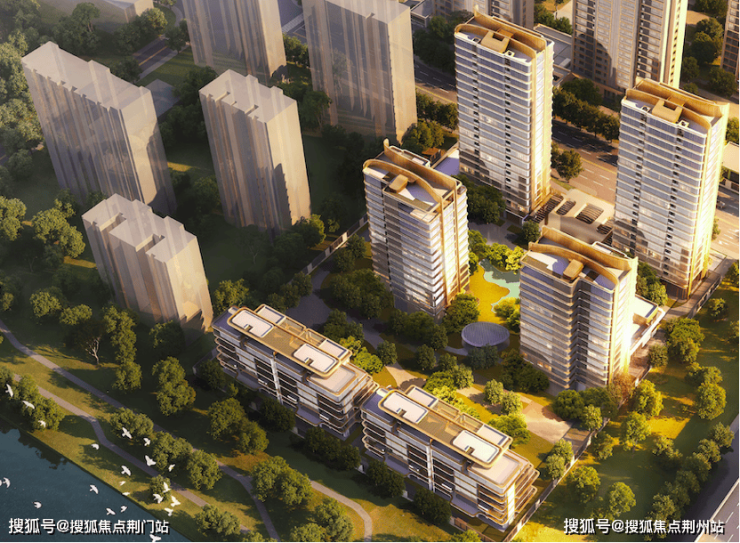 入市的两幢叠墅北侧一线沿河,为运河支流。叠墅外立面延续高层风格,大面积弧形转角落地玻璃和石材线条,建筑颇有艺术感。