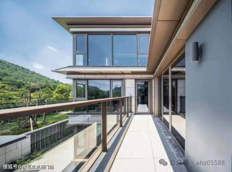 项目以经典三段式为设计基础,底部石材干挂,沉稳大气;全景门窗、及大面积玻璃栏板搭配质感材质,轻盈通透;顶部为单檐歇山顶,搭配批檐,融入最新设计语言,整体灰墙黛瓦,传承中式精髓又做到古法新制,贴合当下。在这山水与都市交汇之处,打造一处可以对话山水的当代桃源。