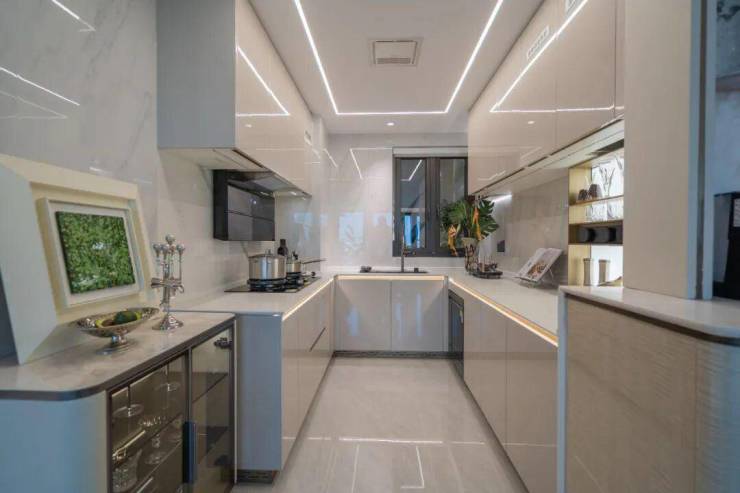 装修方面有:日立中央空调、全屋只能系统、全屋墙布等。