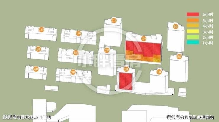 绿城晓澜玉华的分析结果是这样:计算已考虑周边所有建筑的影响,结果表明南部商业冬季会对2号楼产生遮挡,其余楼栋仅受地块内部影响。(说明:本文日照数据基于公示规划图纸文件,使用专业制作工具完成,仅供参考)