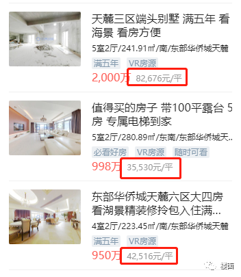 而今,打开链家搜索华侨城天麓的相关挂牌信息,可以看到复式户型挂盘价在3-4万,独栋别墅挂盘价在8万左右,要知道08年距今已经过去了13年,看如今的价格,可以说是血亏了。