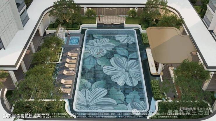 汲取西湖大学人文哲思灵感,学院风门头如美术馆般雅致。一道和鸣思想、串联风景的流动之环,学院门仪、下沉庭院、漩光泳池、谧谷花园等 “学仕四幕” 四进归家,繁花之间,流淌松弛度假风情,生动场景串联归家路上的不落幕风景。