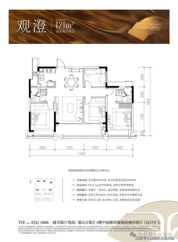 约129㎡臻樾 四室两厅两卫杭州招商潮语臻境府欢迎拨打售楼处电话:400-018-7969转444(有专业顾问为您一对一讲解)