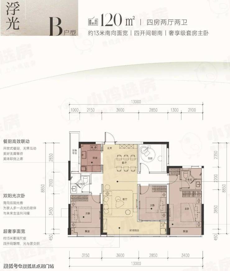 推荐理由:项目中所有最好的位置都留给了它,每一套的南向采光面均不沿街。本户型仅120平米就能享受四开间朝南布局。双联阳台+双飘窗设计免费扩大了室内的视野。