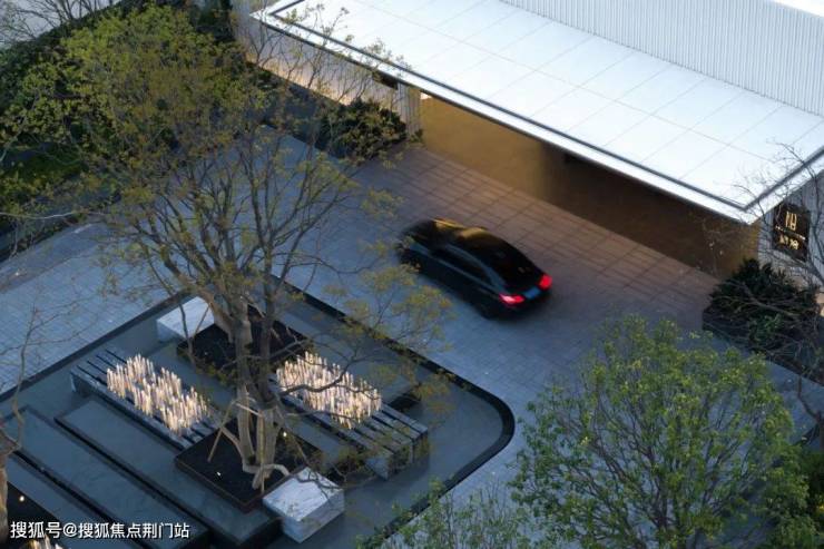 譬如,会特意打造一条绵长的归家景观带,面向城市内退设计街角花园,主入口就像个度假庭院,环岛树池的落客空间,迎宾门廊,以灯具为引,奢石为饰,贝金米黄石材立面,将雅奢的仪式感演绎的淋漓尽致;社区内部,静心庭院、水榭林间、微风草坪、疗愈花园等丰盈的「小尺度空间」深化沉浸感,最终呈现“精致、静谧、雅奢、放松”的产品特质。
