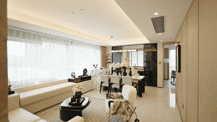 从室外风景到室内精装,大面积木饰面搭配“芬迪白”岩板背景墙,铺展出纯净北卧的浪漫气息,直接将空间从舒适型升维至奢享型。再加上中央空调、地暖、新风系统三大件奢配,四季恒温恒湿,舒适无需等待,实现改善一步到位。