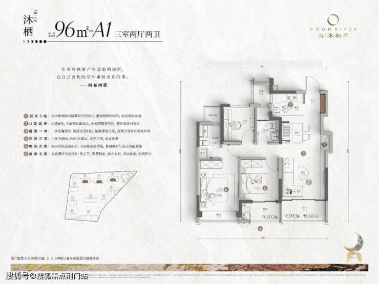 波光为笺,树影成诗沐新月是继沐晴川、沐云川之后,M55产品系列的第三个作品。沐新月府因地制宜,旨在打造96~135㎡水岸小高层,以林汐美学为源点,承袭大水院美学、夜行者美学、漂浮美学等经典元素,环绕建筑的都会森林、环绕园林的美学潮汐、环绕水景的漂浮岛屿的三重景观美学。