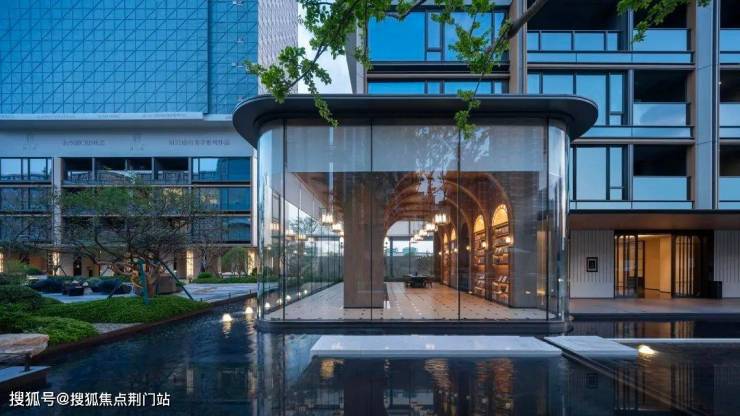 水岸边连缀着六大“云端漂浮会所”:有茶室、艺廊、会客厅,也有面朝80年树龄羽毛枫的玻璃冥想亭。最让人目酣神醉的,是那座凌于水畔的玻璃图书馆。