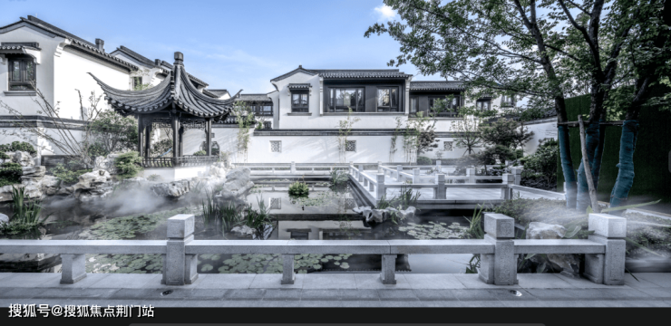 昂贵的黑松和羽毛枫分立两侧,四角是设计师精挑细选的乌桕树,中间叠水曲折辗转,宛若自然秘境。