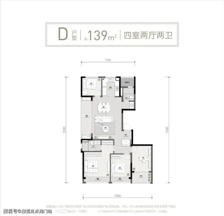 再往上是131㎡和139㎡的四房两厅两卫户型。这两个户型相似度较高,都是大边厅带阳台设计,南面都是三房带飘窗,通风和采光都能得到有效保障。