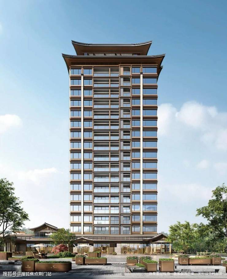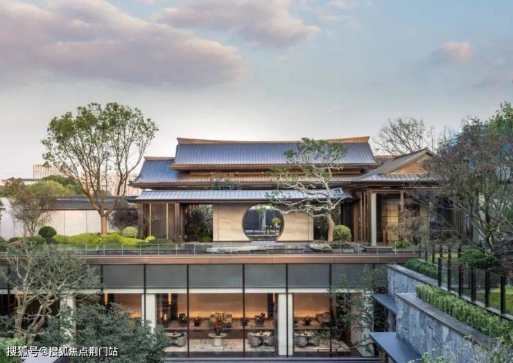 项目整体沿用建发最具特色的新中式建筑风格,“重檐悬山顶”的主入口大门,仿传统屋顶戗脊形式,并结合logo装饰,尽显恢弘气度。
