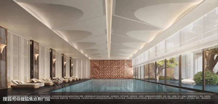 会所挑空壮观,吊顶、水晶灯,以及搭配香槟金的色系,豪宅感很强。
