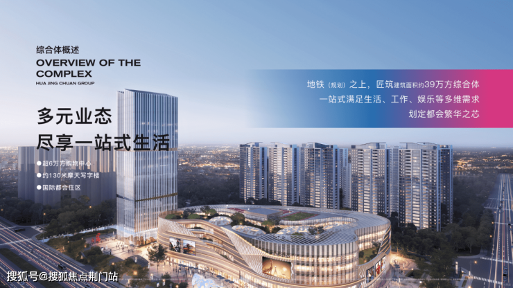 项目自带超6万方购物中心、约5000方商业街区、约130米天幕写字楼、奢品酒店、规划影院、内外双街、云端会客厅等。