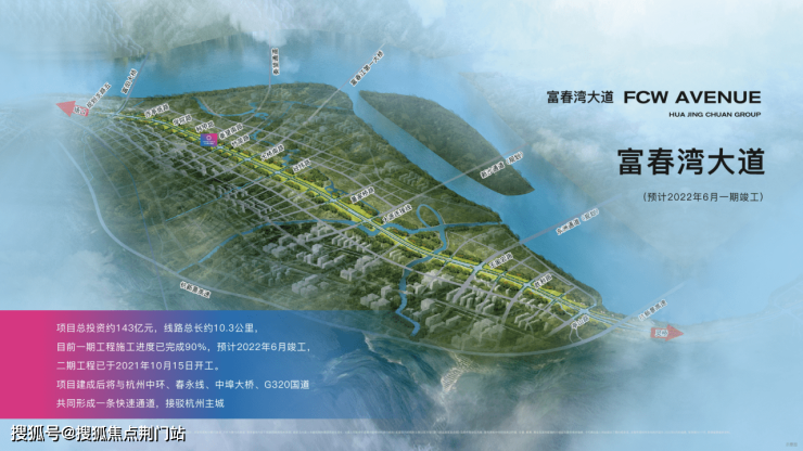 连接富阳主城区秦望路和杭州富春湾新城秦望南路(规划),助力新城快速接驳富阳主城区,预计2023年6月建成。(秦望府均价约3万元/㎡,仅一江之隔,近百万价差。)
