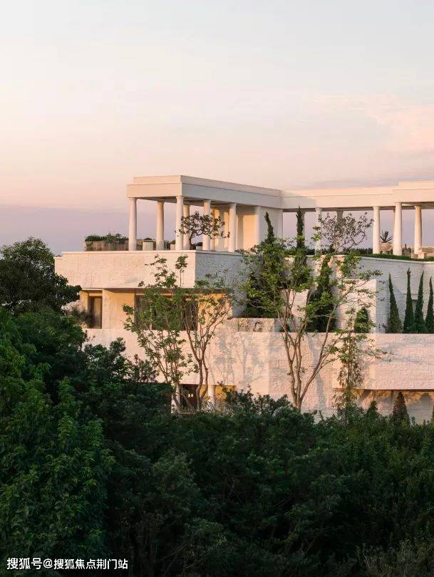 三楼景观瞭望台设置悬挑9米的无边镜面水池,被法式浪漫的柱廊环抱;向南望去,群山连绵,天际线高低起伏,美不胜收。每到傍晚,太阳回到这里,带来满池的霞光,让人忘却烦恼,沉醉于这份恒久的美丽之中。