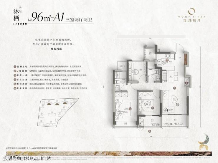 主力户型约96-135㎡,不厌其烦地设计了7款户型,每一款都带双阳台。无论你是单身、新婚、二孩家庭、三代同堂……都能在沐新月找到答案。