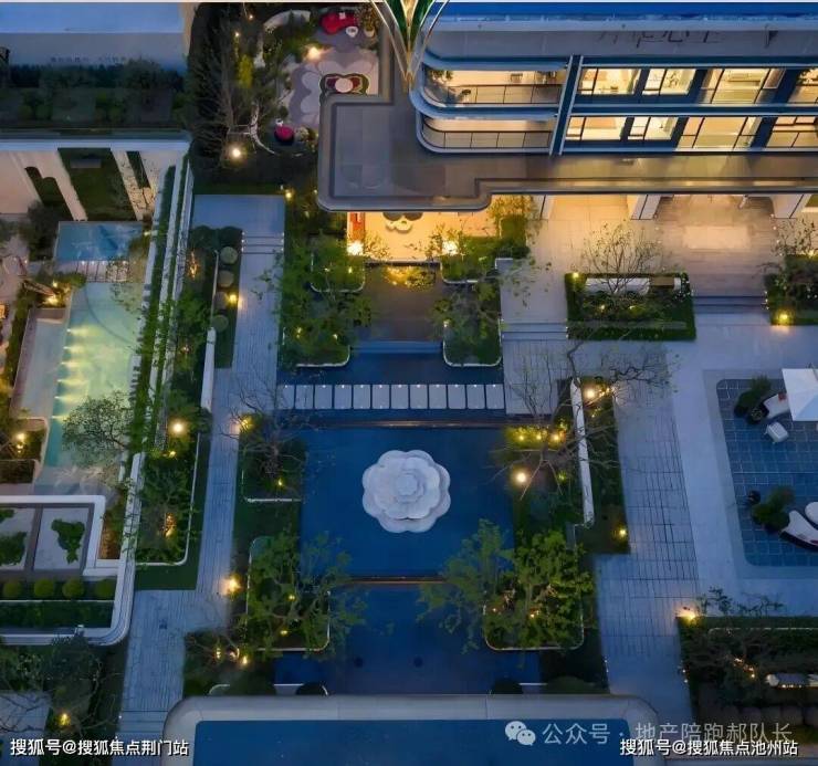 下沉式庭院巧妙借鉴自然山谷的形态,以叠水、绿阶、浮岛等元素精心构筑,呈现“飞瀑挂崖”的生动景致。庭院中央的女王画舫若隐若现于林水之间,业主可在此品茗赏景,尽享“都市女王”般的优雅与从容。
