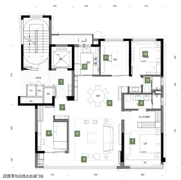 建面约149设计了一个方厅,同时约5.25米开间的大客厅,一般只有在170㎡以上户型才会出现。