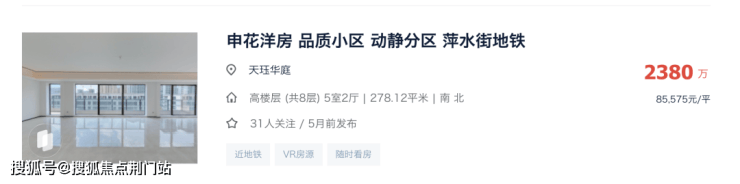 申花同一个小区高层和洋房的挂牌价
