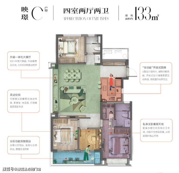 建面约130㎡、133㎡户型则是改善家庭的最爱,均是四房户型。