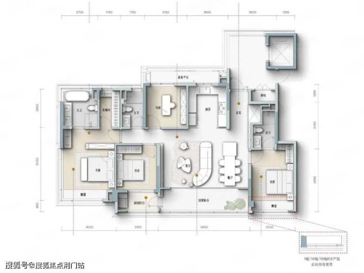 四开间朝南设计,主卧套房设计,宽景封闭式阳台。
