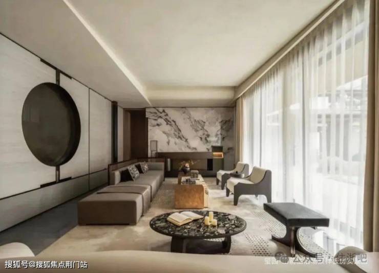 在建筑营造上,由gad张微老师执笔,延续和家园“章法天成,自然而然”理念,玺园·山前取法宋代郭熙的“三远论”,运用石材、玻璃、铝板等材质的巧妙搭配,结合正脊、戗脊、博风板、悬鱼、鱼鳞瓦等经典元素,呈现虚实相生、平远雅致的经典立面。