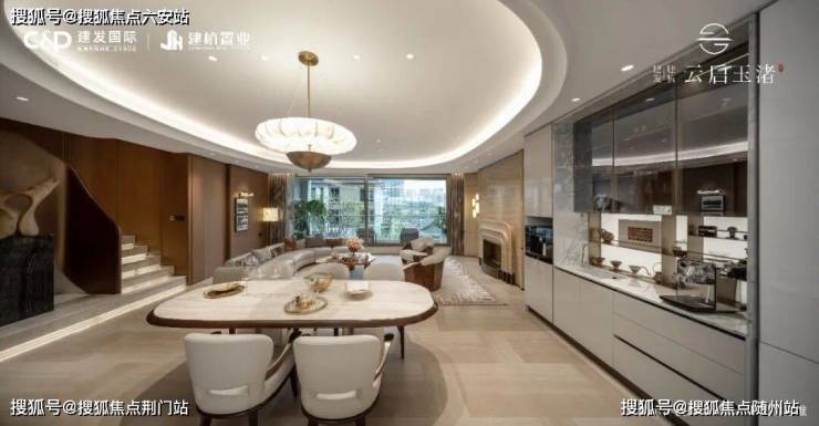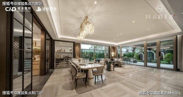 以建面约290㎡排屋样板房为例,玄关处黑白拼花地面,构成几何秩序的序厅;深色皮革墙面与古铜金属勾勒出沉稳质感;玉琮纹样、良渚图腾等文化符号,被巧妙转译为现代装饰细节。整个空间在“海派风情”与“东方意境”之间取得精妙平衡,不张扬,却见格调。欢迎拨打售楼处电话:400-018-7969转444(有专业顾问为您一对一讲解)
