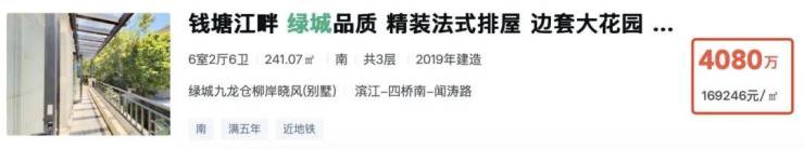 再把范围缩小到看滨江区的新楼盘,低密纯墅区那就更凤毛麟角了。二手也是“高低配”,如柳岸晓风的排屋成交单价约17.85万/平,一套在挂牌的建面约241方房源总价高达4080万!(数据来源:贝壳&安居客,统计时间:20251229)