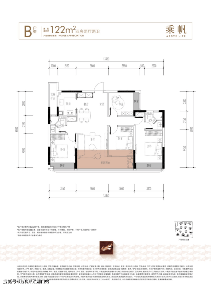 起步的建面约106方,南向开间达到约10米、封闭式阳台、客厅做了S墙,非常适合年轻夫妻或三口之家,空间尺度很舒服。