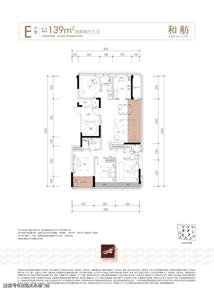 建面约139方边套有两个户型,都做到了动静分离、三个卧室朝南。尤其抢眼的是,D户型设计出了一个独立储藏室,而E户型打造出了三个卫生间、实现了南向双套房,都是非常舒适的优质改善户型。