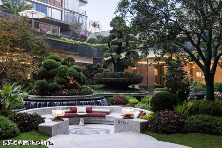 让小胖印象最为深刻的是那个下沉式庭院:树木都是非常浓密的那种,一看就“很贵”,而且几乎每一棵都有“专属花盆”,修剪的层层叠叠。