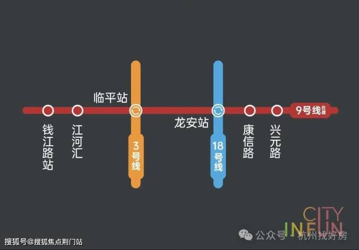 项目横跨地铁9号线兴元路站(在建)、康信路站(在建)两大站点,以轨道打破壁垒,一条地铁直达钱江新城、城东新城、滨江、西湖等高能区域,更高效的日常通勤外,还能享受到一脉市心的生活配套。