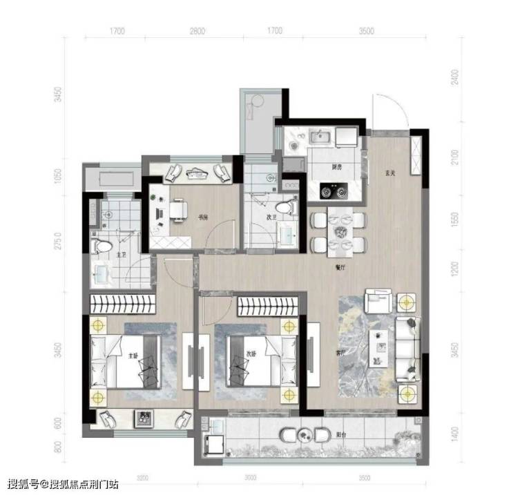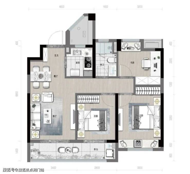 刚需小三房,户型方正、全明设计。双卧南向、客厅和次卧连接的6.2米宽阳台引景入室,空间通透。