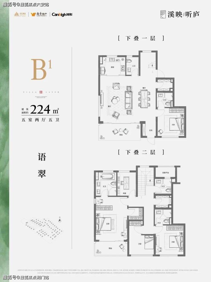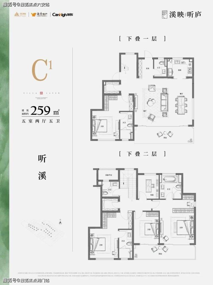 溪映听庐的产品设计独具匠心,全区仅设上叠和下叠两种产品类型,没有中叠,真正做到每户独门独户,私密性佳。下叠户型建筑面积约260㎡,配备约150㎡南向庭院,地下室层高5.8米,采用双采光井设计,可改造为茶室、收藏馆等多功能空间。