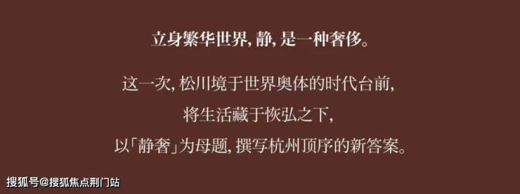 在寰宇目光的注视下,由滨江豪宅基因和兴耀独立美学联合打造的松川境项目,在距离杭州之门约3公里的矜贵土地上,再一次在世界维度,成就下一个黄金锚点。