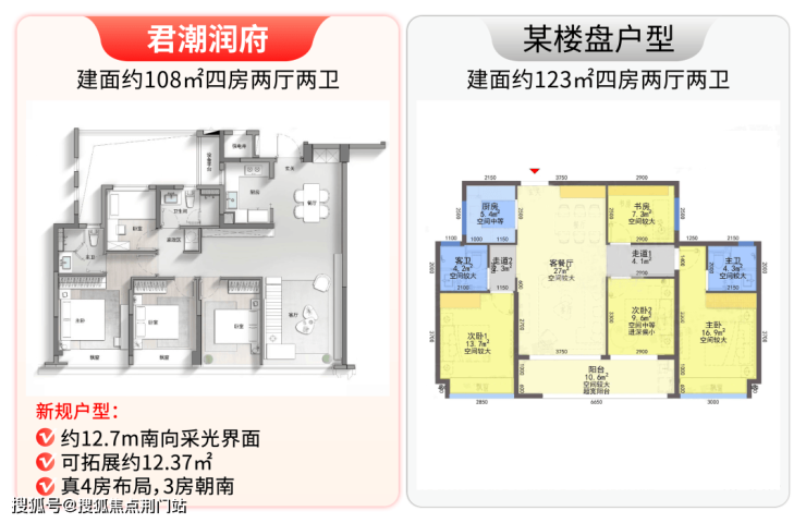 建面约108㎡户型,门槛低,但实用率媲美市面120㎡尺度、相当于赠送一间房,预算300万级的购房者要盯紧了。