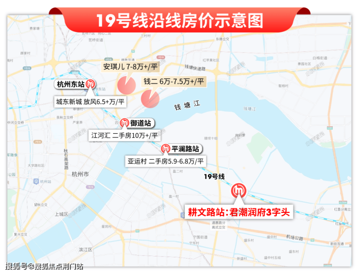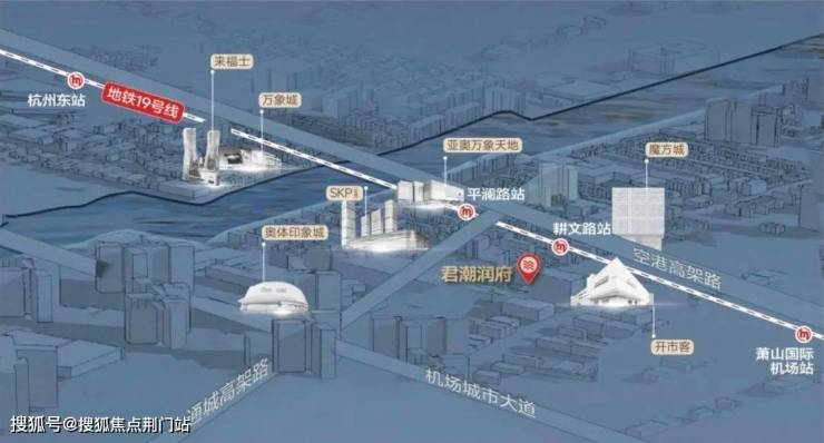 要知道,地铁19号线堪称黄金大动脉!从君潮润府出发,一站瞰亚运,两站汇江河,三站杭州东,四站西湖文化广场,五站钱江路。还有两端的「第三中心」杭州未科&云城、国家级临空经济示范区……