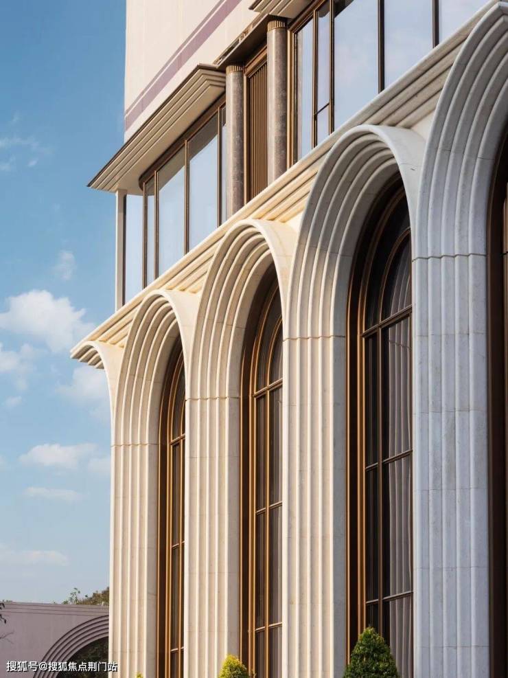 咏印明庐用自己的实践重新定义了下一个十年豪宅应有的样子:贝金米黄石材雕琢的意式拱券,搭配古铜色金属线条和大面玻璃,远看是运河畔一部恢弘的秩序史诗,近观则展现出东西方美学精髓的完美融合。