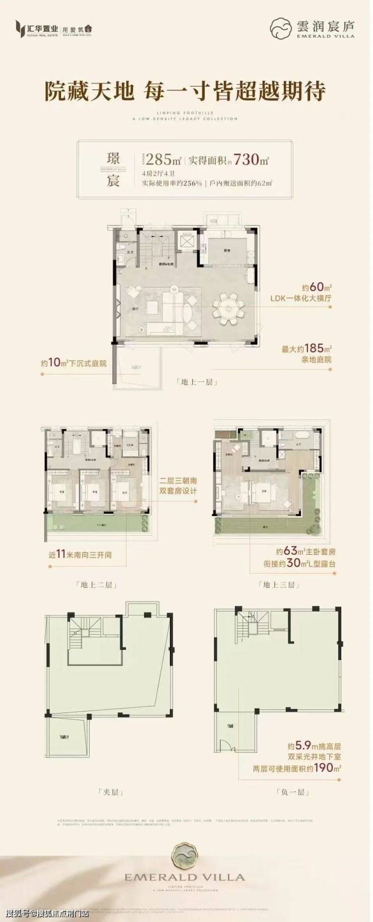 以建面约285㎡的经典户型为例,实际使用率达到了惊人的约256%,使用面积超七百平!