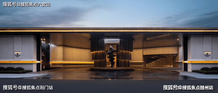 第二重门厅参考台北嘉佩乐酒店的叙事风格,以一座环形的前场庭院作为业主归家的情绪整理空间。环岛落客区打造“天光云廊”,营造从繁华到宁静的空间过渡,开启度假般归家体验。