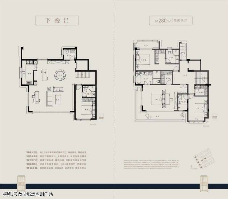 户型方面,主力建面约210-280㎡四层叠墅,采用全套房设计,朝南大开间阳光满堂,主卧“小家化”,步入式衣帽间和独立卫浴间兼备,更大尺度的面积,更开阔的家庭社交区,更舒适的套房空间。
