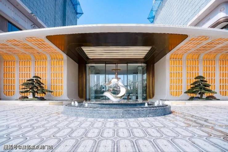 荣耀来自归家的仪式感:宽约68米的超大门头,尺度和奢阔程度都超越了市场上很多的豪宅,让业主归家的第一时间仿佛来到高奢酒店。镂空琉璃砖的织锦设计,云母石的柔和光影,造价不菲的罗汉松,走到家门口的那一刻,仿佛主角闪亮登场。