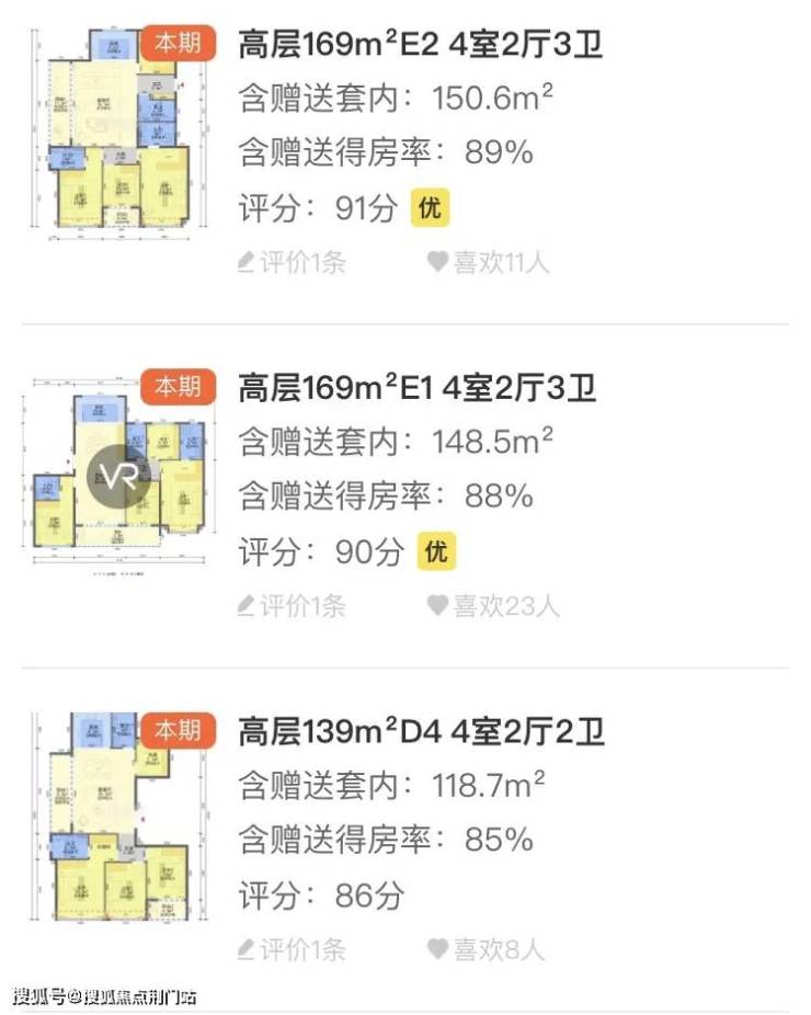 【机构实测】实测得房率,约83-91%,含赠送,如下图所示
